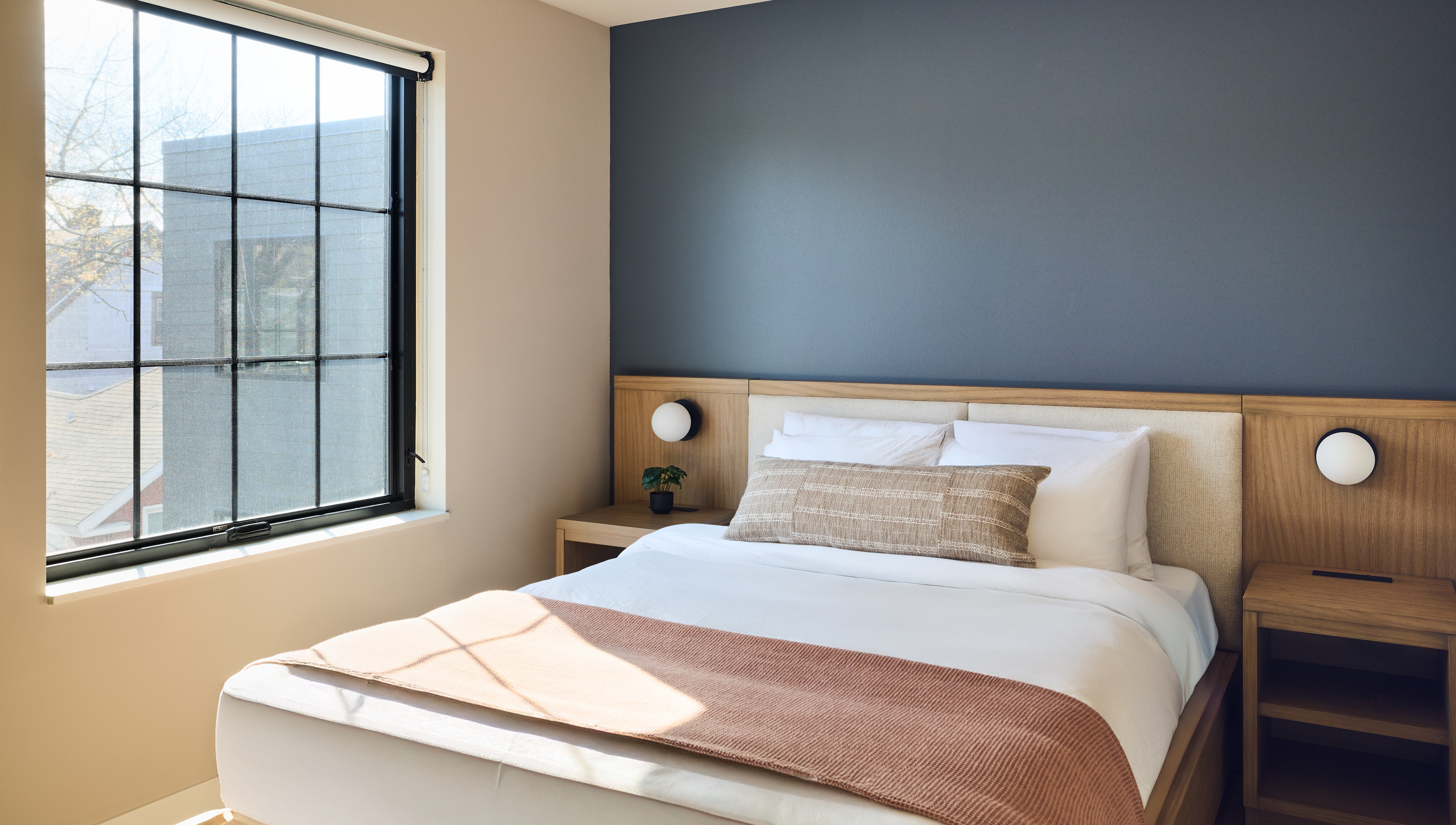 Perfect for families or groups, this two-bedroom apartment features two private bedrooms, a fully equipped kitchen, in-unit laundry, and a spacious living area. Each bedroom is furnished with a Tuft & Needle mattress and Bokser bedding.